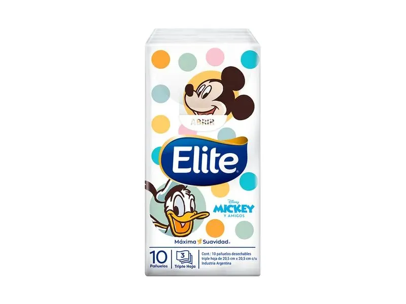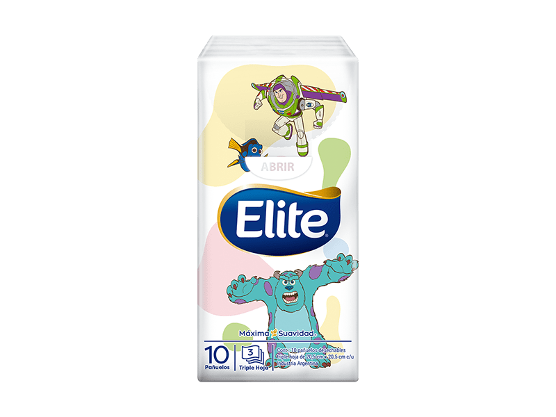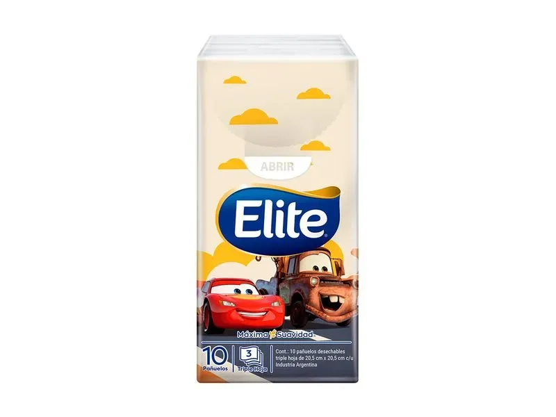 Los pañuelos Elite están elaborados con fibras de papel tissue y lociones suavizantes que dan un cuidado único a tu piel. Diseños surtidos.